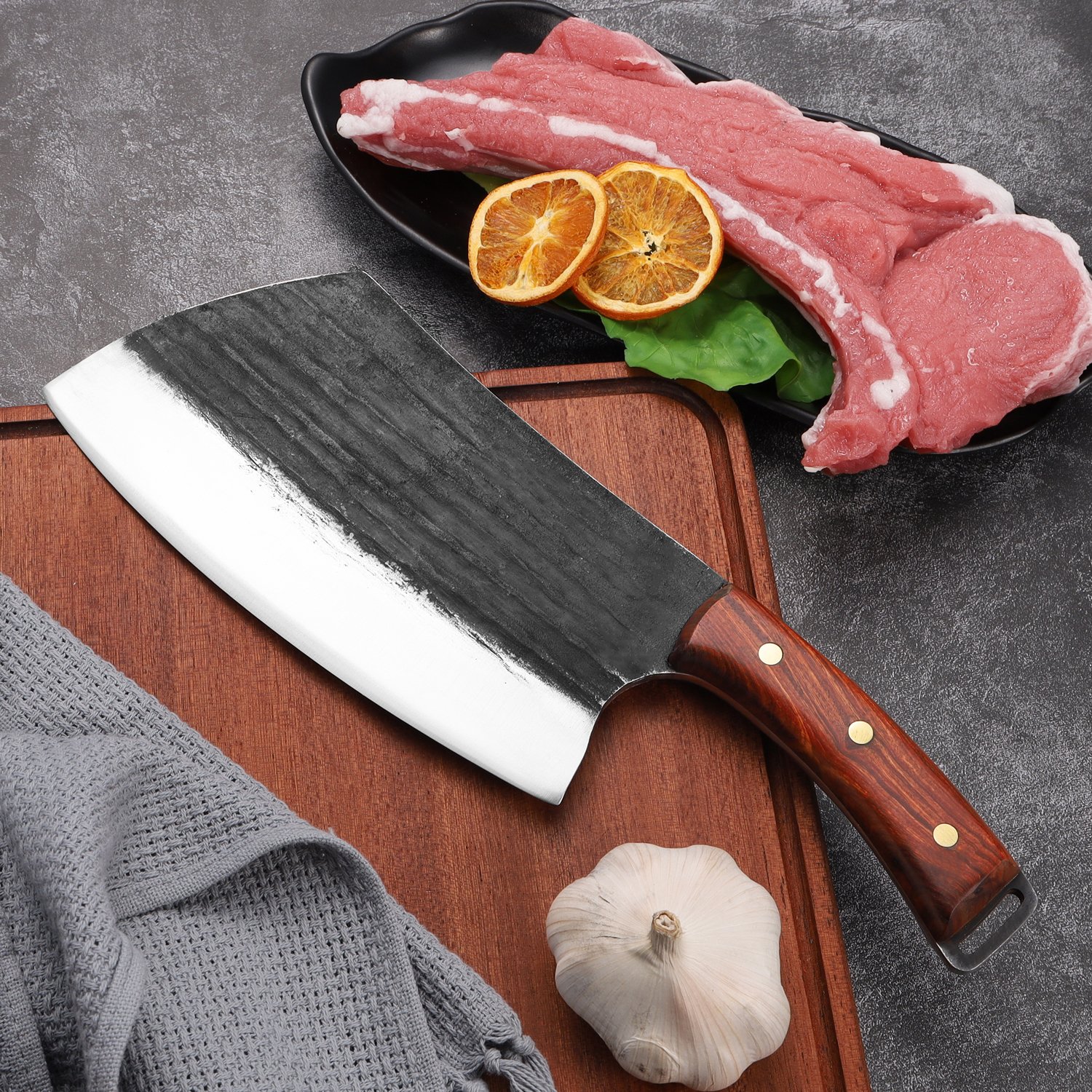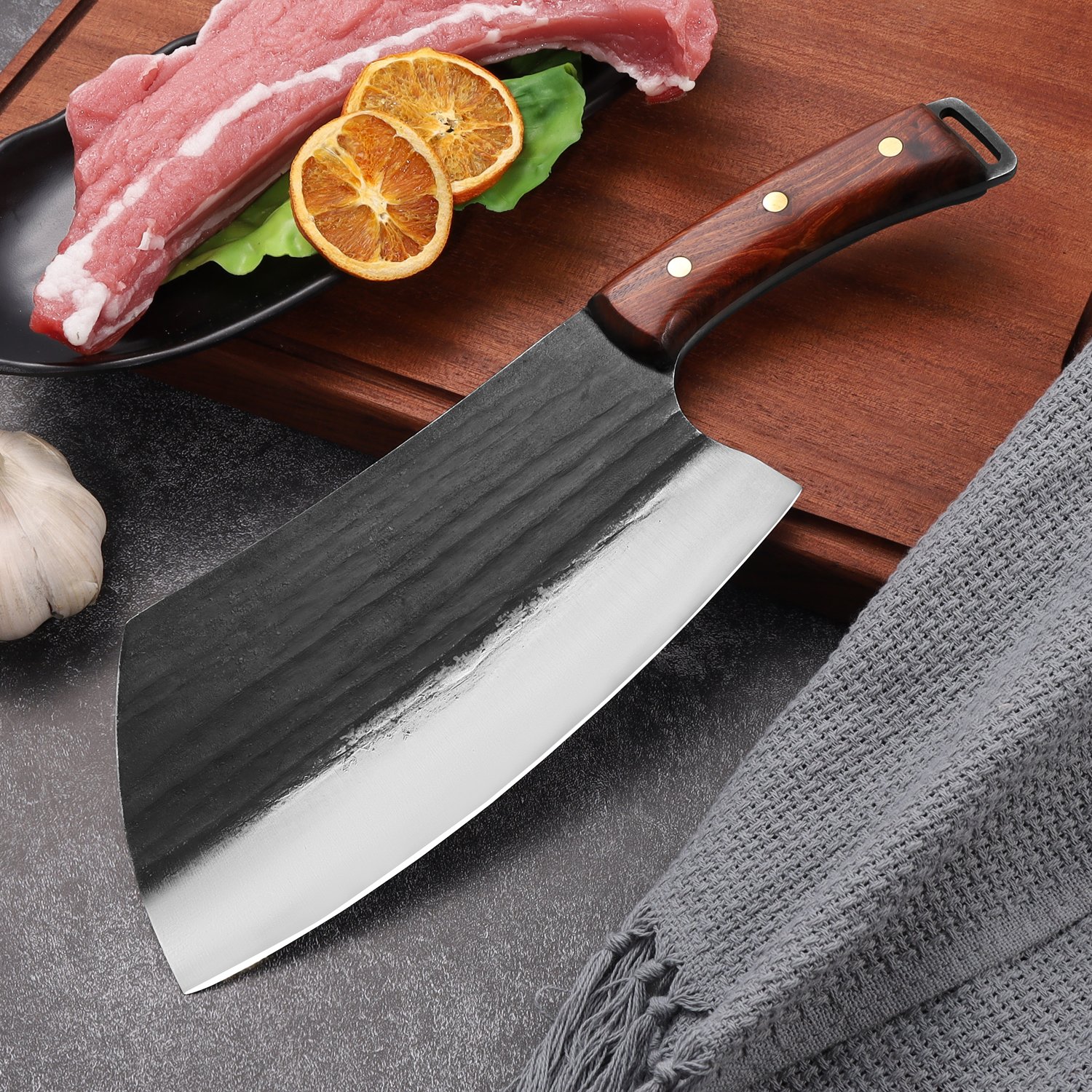 High carbon Steel 8 Inches Chopping butcher Knife Heavy Duty Easy for Home&Restaurant
