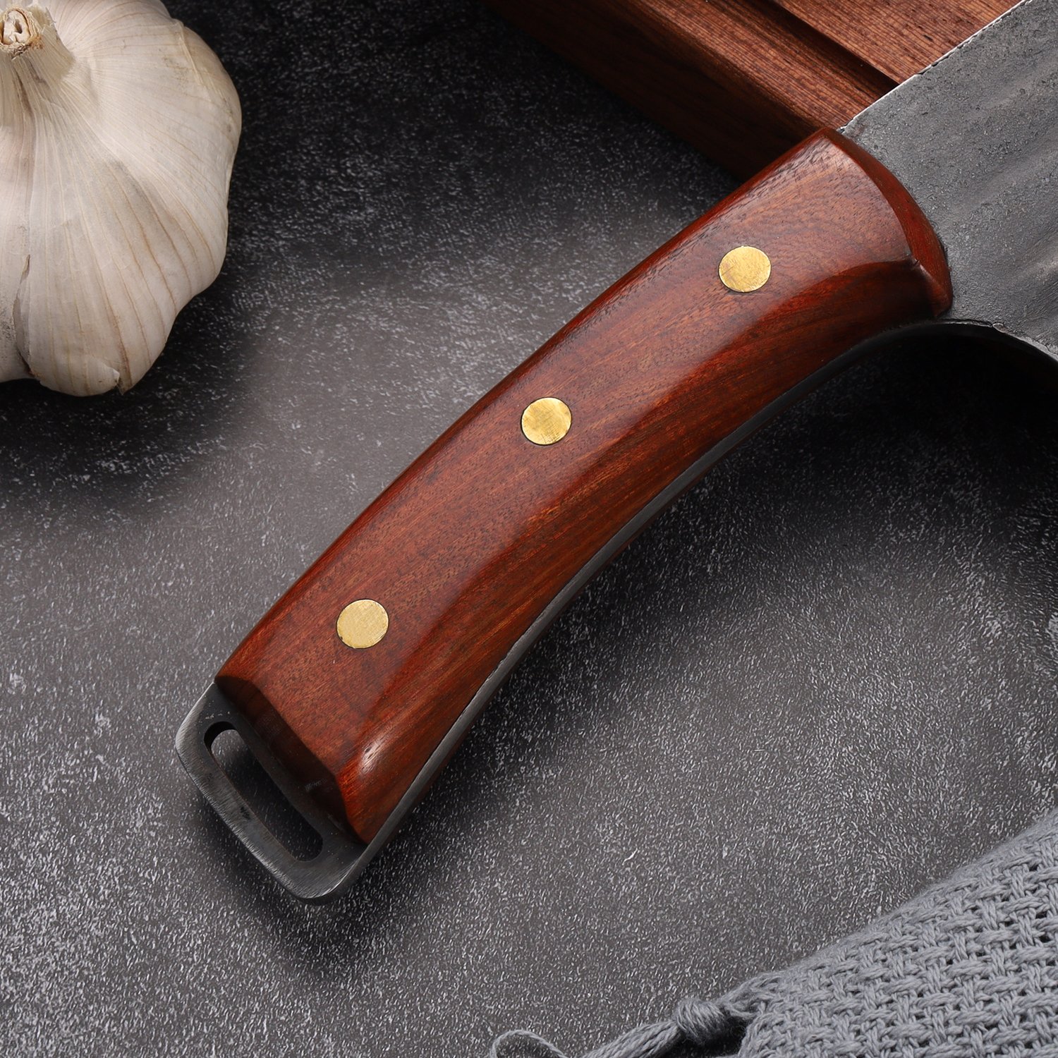 Since the knife is made of high carbon steel, the user often maintains it, and it can be stored with olive oil when not in use