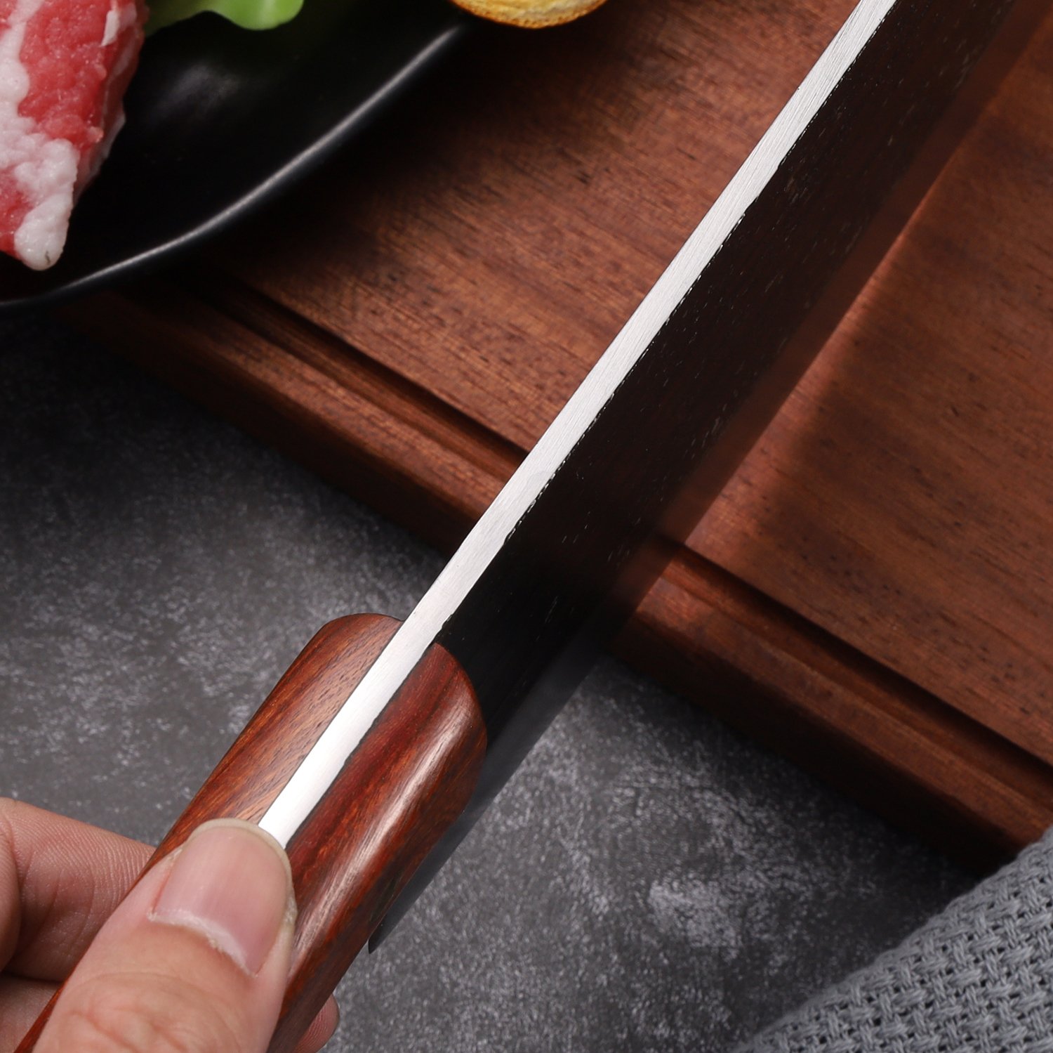 2: High hardness: The hardness of high carbon steel knife is higher than that of stainless steel knife, so the cutting effect is better and sharper.
