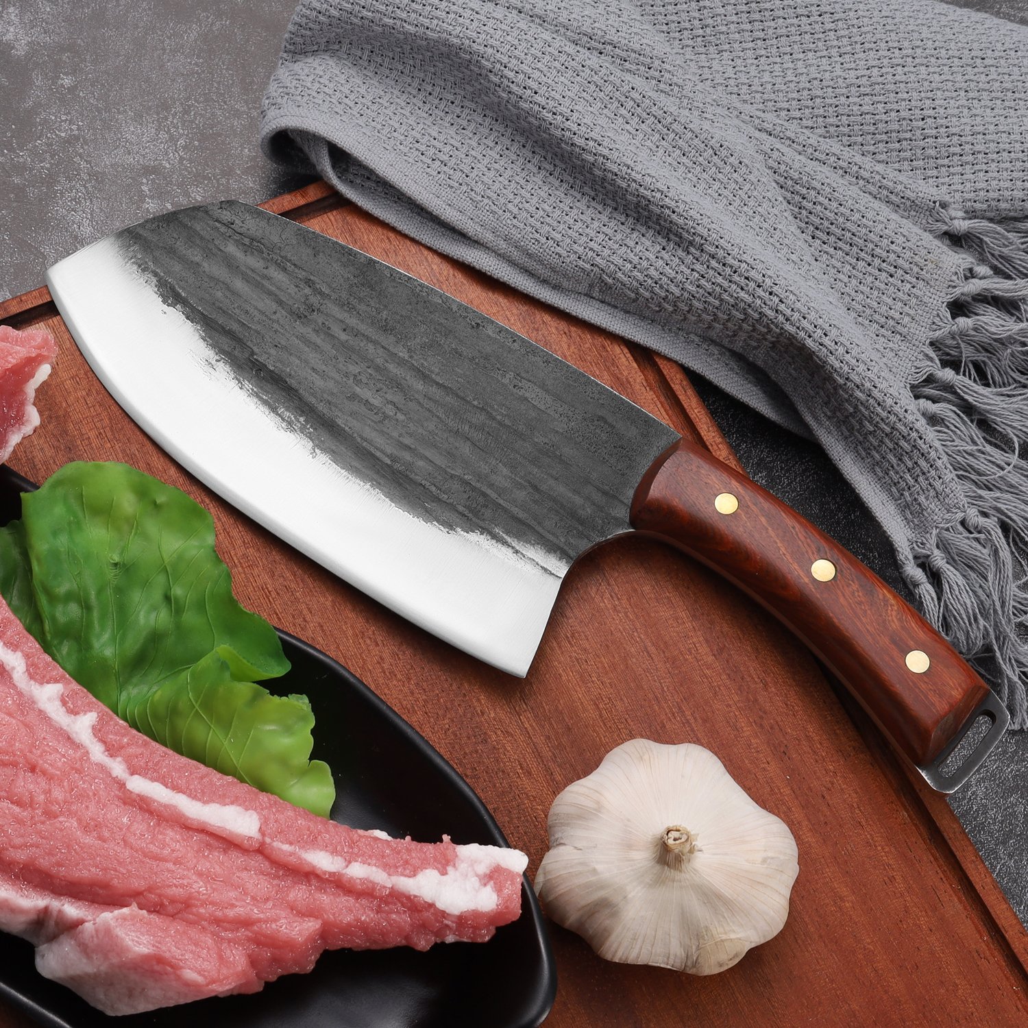 Meat Cleaver Knife, Handmade Slicing Labor-Saving Handle Meat Cleaver Forged Chinese Kitchen Chef Vegetable Knife