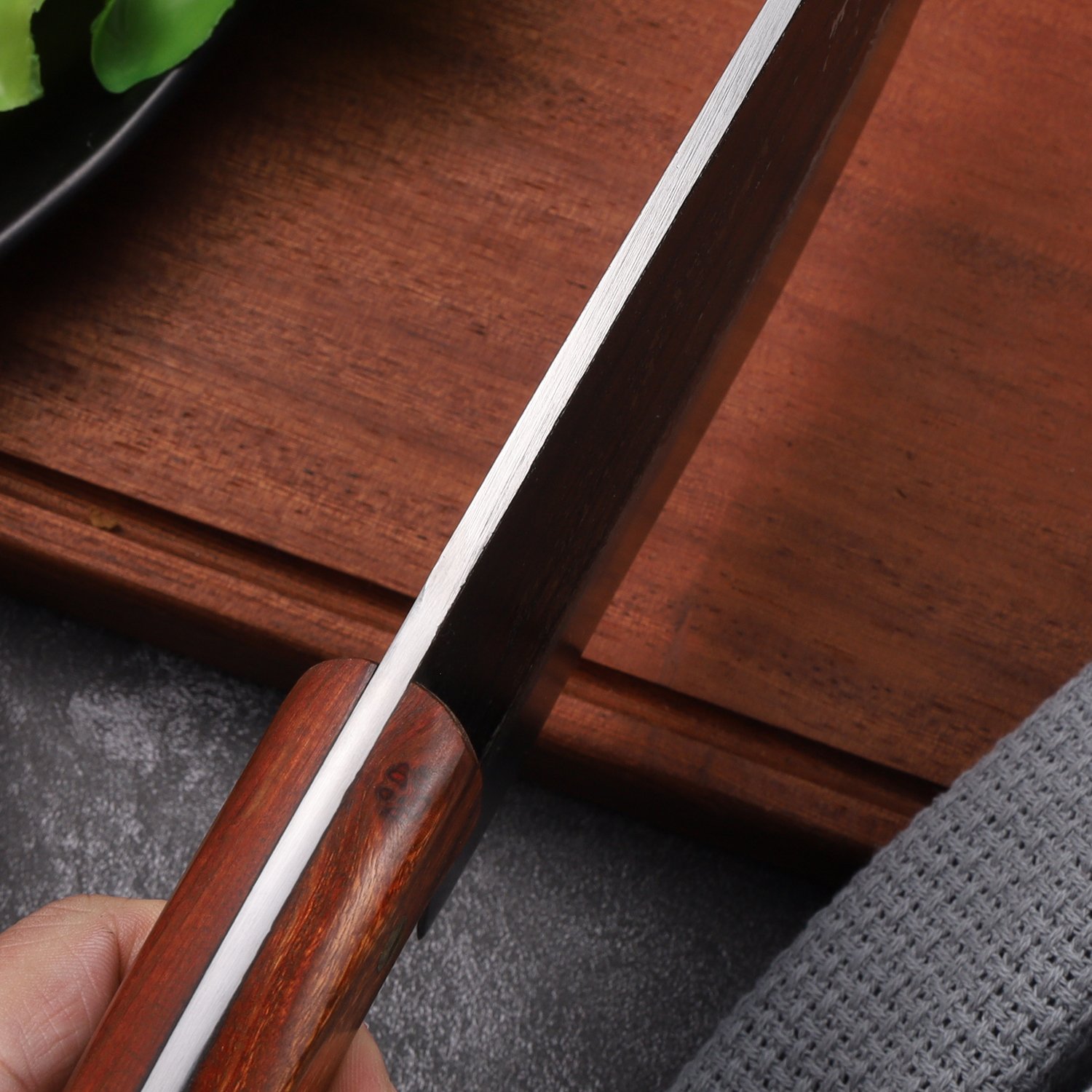 3. Easy to sharpen blade: The hardness of high carbon steel knife is high, so it is easier to sharpen the knife than stainless steel knife. Due to the high carbon steel material and the heat treatment method also have a favorable effect on the sharpening tool